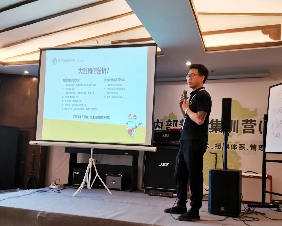 本届内训新增课程《金手指团队作战招生实操课程》,由金手指吉他湖北武昌分部校长谢晶主讲。