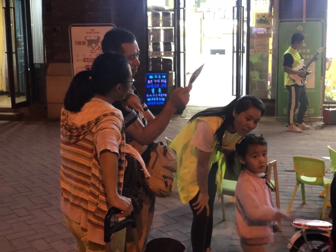 夜幕降临,音乐会吸引了路人的目光,孩子们学着拿起吉他,感受音乐的魅力...