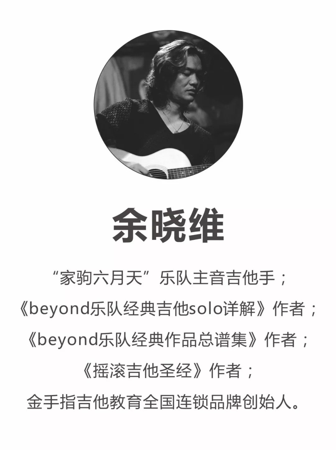 《Beyond乐队系列教程》系列丛书由中国知名吉他手,中国现代吉他教育革新者,“金手指吉他教育全国连锁品牌”创始人——余晓维老师编著,全国正式发售中!