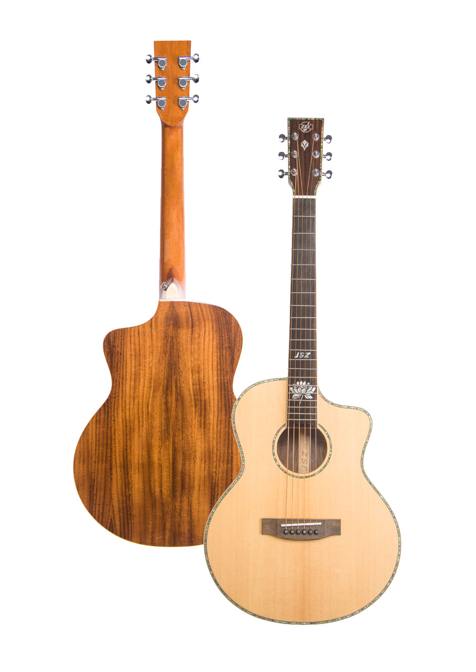尺寸:36英寸 型号:JSZ-V54 箱体材质分类:面单 面板:A级云杉单板(亮光) 背板:相思木(亮光) 侧板:相思木(亮光) 琴颈:桃花芯实木 指板:玫瑰木实木 拾音器:无