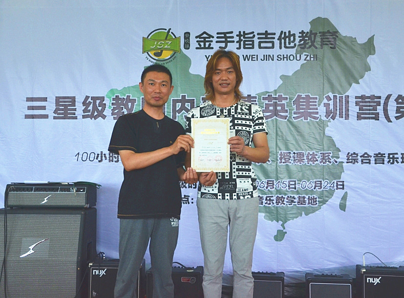 二是总部每年会定期提供师资内训,我刚加盟金手指后,便参加了三星级教师内部精英集训营(第七届),十天的精英内训对我帮助极大,现在,一堂课我仅用两个课时便能让我的两支学生乐队将《新年好》这首曲子完完整整排列出来,家长对此非常满意,觉得课堂氛围比以前活跃很多,家长都愿意让孩子来我这里学习,这都是金手指的功劳,不仅让我掌握到科学系统化的集体课教学法,调节好课堂气氛,还得到学生及家长的极大肯定,我对今后教学生涯充满了信心。