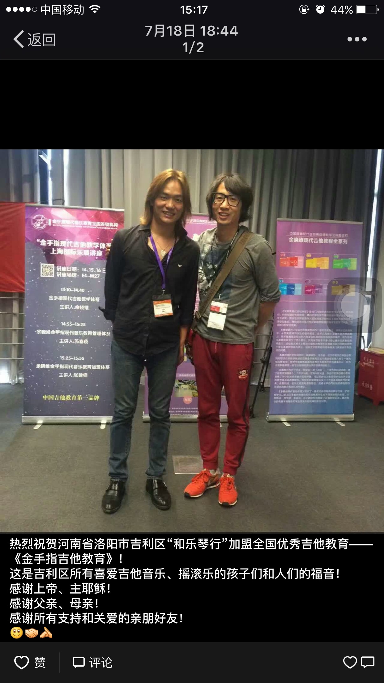 成川老师于2015年10月上海乐展期间参加“金手指吉他集体课教学体系”宣讲会,经过一年思考及实地考察学习,于2016年7月正式加盟余晓维金手指吉他教育。