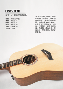 面板:A级云杉单板 背板:桃花芯木合板 侧板:桃花芯木合板 琴颈:桃花芯木实木 指板:玫瑰木实木 拾音器:可选