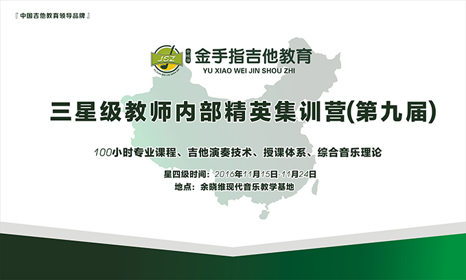 近几个月,金手指大家庭不断壮大,新晋加盟商与日俱增, 应全国各地100多家加盟机构广大老师们的迫切需求,综合目前各分部对于专业教师、尤其是集演奏、教学、管理于一身的精英式综合人才的需求,在过去的半年时间里,加盟机构快速增长,已经举办了3届三星级内部精英集训营,为中国的吉他教育事业输送了一大批精英人才,由于效果很好,很多新晋加盟商及加盟分部负责人希望将机构老师送到总部培训,因此总部决定在2016年11月15日-24日举办为期10天的“金手指吉他集体课教学体系”三星级内部精英集训营(第九届).....