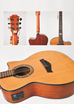 面板:A级红松单板 背板:桃花芯木合板 侧板:桃花芯木合板 琴颈:桃花芯木实木 指板:玫瑰木实木 拾音器:可选