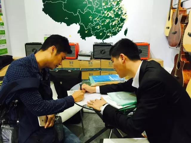 本届上海国际乐器展上,余晓维金手指吉他教育亮相的不仅有全套完善的吉他教学体系,还有各种类型吉他以及效果器等周边的全系列产品,更是重磅推出了“金手指智能吉他教室”及“金手指数字化吉他课程”,成为了本届展会教育培训机构版块耀眼的“明星”引爆上海乐展,26日-29日开展四天,展位的人气一直火爆不降,咨询客户应接不暇,乐展期间现场签约加盟15家,意向签约加盟80多家,与去年一样,由于加盟政策的区域代理限制,很多有强烈意向加盟的地区也只能望洋兴叹,再次提醒还在犹豫的同行们,如果你的地区还没有加盟代理,赶紧抢占先机吧。