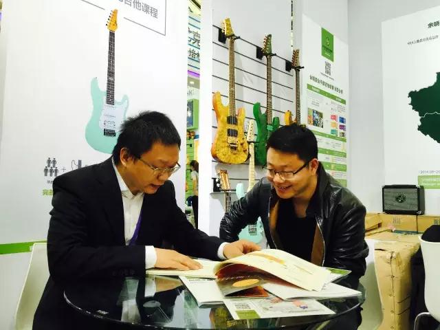 携手业界同行,百花齐放“余晓维金手指吉他教育”品牌发展之路上也得到了众多业内人士的关注与支持,本次上海乐展更是携手国内知名爵士鼓教育连锁品牌“黄河爵士鼓教育”一同参展,一家做鼓教学,一家做吉他教学,优势互补,助力更加快速发展。展会上“睿卡尤克里里”“珠江钢琴”“睿艺”“爱玩吉他”“辛巴星钢琴”等众多品牌都表现出对金手指吉他教学体系的关注以及合作意向。国内有影响力的音乐学院“迷笛音乐学校”张帆校长更是邀请了金手指团队一行,深切交谈关于“迷笛”与“金手指”在未来吉他教学领域上(迷笛考级、迷笛音乐节等)各种合作可能性。同行的关注,是我们前行的动力,我们也相信行业的发展必定是百花齐放,携手并进,期待在未来的路上有更多的伙伴牵手我们,一起为中国的艺术教育做出更大的贡献。