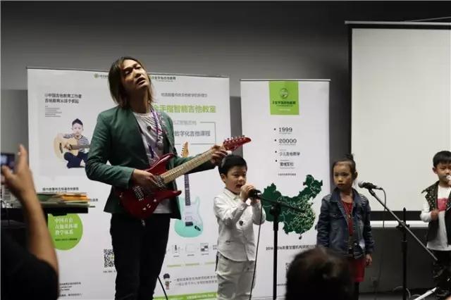 △6岁金手指小吉他手现场演绎,五线谱视奏,视唱、弹唱、听音,震惊现场,国内第一批低龄化吉他学员从金手指吉他开始培养。