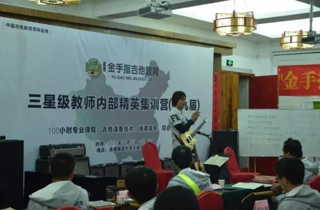 为了让加盟机构的老师们能够真正的掌握《余晓维现代吉他教程》完善科学的教学体系,能将教学很好的落地,而不是加盟以后拿到一套教程却不知道怎么去使用,总部特别开设了内部精英集训营,每一期内训为期10天,以《余晓维现代吉他教程》为培训内容,共分为三星级(第一学年)/五星级(第二学年)/七星级(第三学年)/九星级(第四学年)/十星级(第五/六学年)。通过十天内训手把手式的教学,最后还要通过严格的考核,方可获得相应的星级证书。内训期间,余晓维老师全天亲自教授各位老师授课法,将金手指吉他集体课教学体系的核心教学法毫无保留的教授给各位老师,并让每一位老师通过演示/试讲/考核等方式去巩固学习的内容,做到真正的落实教学效果。