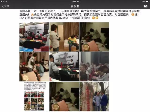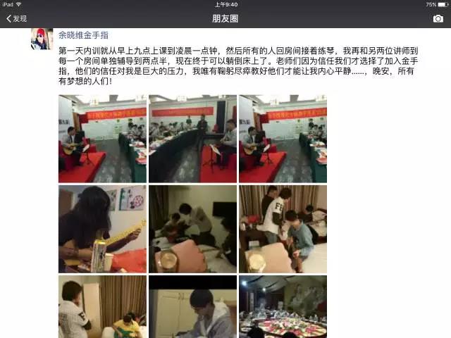 一天课程结束,各位老师都已经进入“疯魔”状态,完全停不下来学习的劲头,回到房间以后继续练琴,也真正见识了传说中的魔鬼训练营以及“魔鬼教头”余晓维老师对金手指教学体系背后所付出的努力,所有人都为余老师如此敬业的教学精神竖起大拇指,授人与鱼不如授之于渔,这也许也是余老师的本意吧,只有我们的教师团队先规范了、壮大了,我们才能更好的去教授小孩。教好一个老师,可以教好100个甚至更多小孩,这样标准化可复制的教学体系才是目前中国吉他教学现状急需的,我们相信通过金手指内部精英集训营培养出来的几百名吉他教师一定会在未来的吉他教育之路上有所贡献。