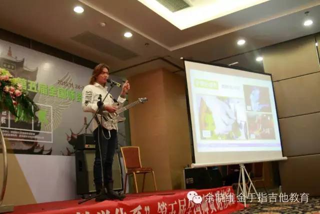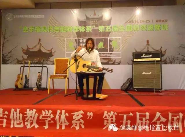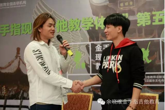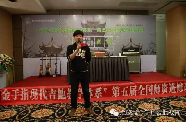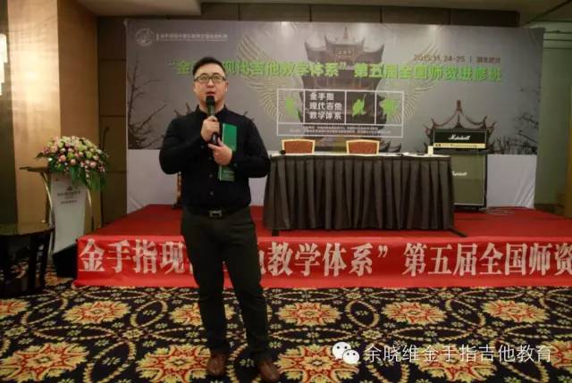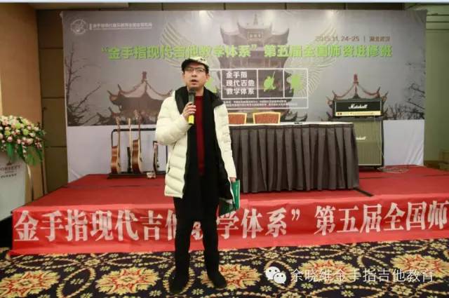 其中几位新晋加盟老师也上台讲诉了自己选择加盟余晓维金手指吉他教育的原因及感受。他们在发言中所提出的关于自身机构发展面临的问题,也正是目前中国吉他教育培训机构所面临的问题,而这些问题在本次进修班上,均得到了很清晰的答案。他们表示:在当前中国吉他教育行业,余晓维金手指吉他教育所拥有的“金手指现代吉他教学体系”、集体课教学法《余晓维现代吉他教程》系列教程、系统化的企业运营管理体系及强大的执行团队等等这些方面深深吸引他们,让他们不再犹豫,继而果断加盟。