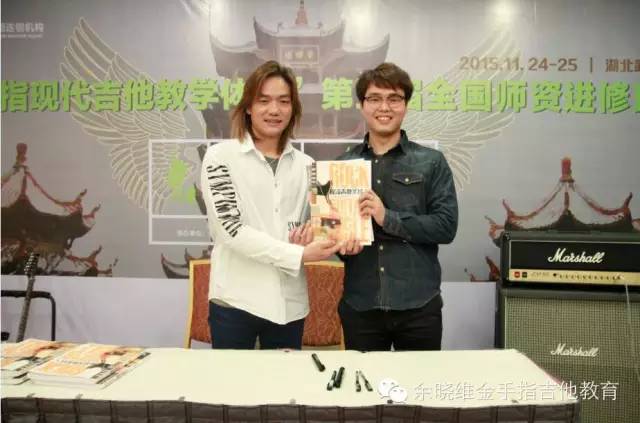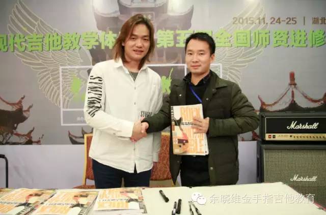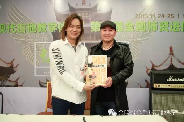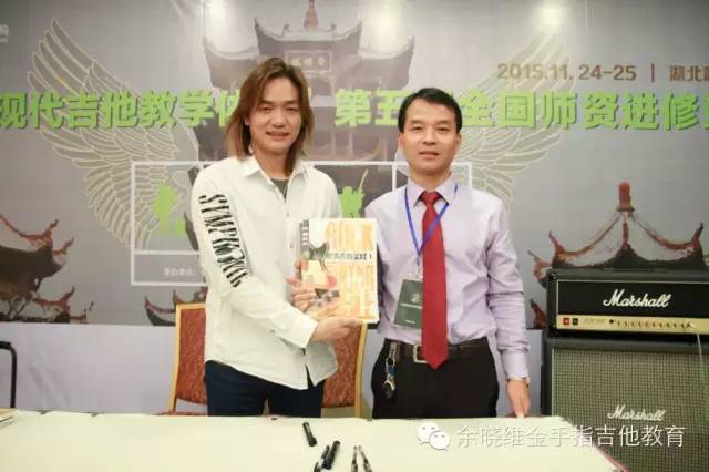 微信互动点赞赢取余晓维老师亲笔签名《摇滚吉他圣经》环节,余老师亲自赠书合影。