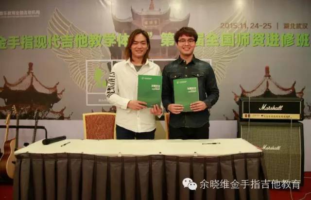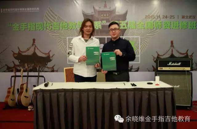在课程开始之前,业绩知名品牌乐器代理商长城乐器与发时达乐器的两位代表为参与进修班的老师们介绍品牌,并正式宣布与余晓维金手指吉他教育达成战略合作伙伴关系,今后,余晓维金手指吉他教育也会不断的提升品牌影响力,携手更多知名品牌厂家为全国加盟机构带来更好的服务!