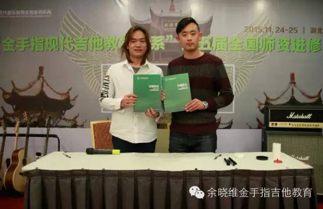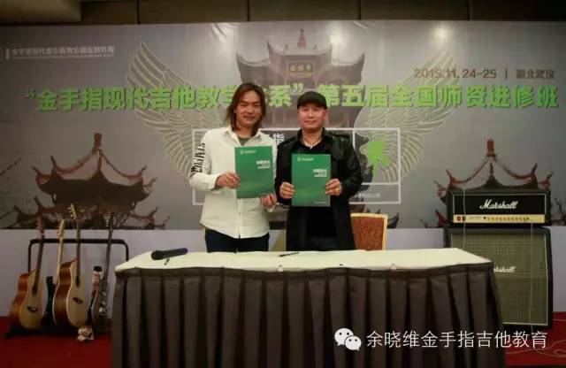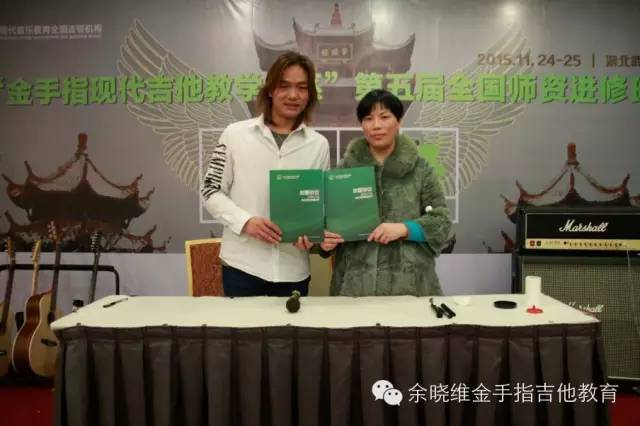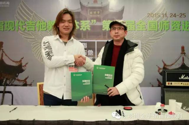 在两位老师详细介绍我们的加盟政策及加盟后期服务后,现场的老师们已经按捺不住激动的心情了,迫不及待的想要现场签约加盟,随后余晓维老师与意向的加盟机构在现场签约,正式牵手了10多家机构,中国吉他教育传播者的道路上又多了一群智者。和上海乐展期间出现同样的情况,有几家单位因为加盟地域冲突,而未能现场达成签约,实属遗憾。还有部分单位也表示回去以后立刻召开股东会议,然后办理加盟手续,他们表示这套体系就是他们寻求已久的“救命稻草”。但余老师也表示,无论是否加盟,大家都能够一直奋斗在吉他教育的前线,大家就是战友,日后的教学中也会与大家多多交流,互帮互助,一起为中国的吉他教育努力!