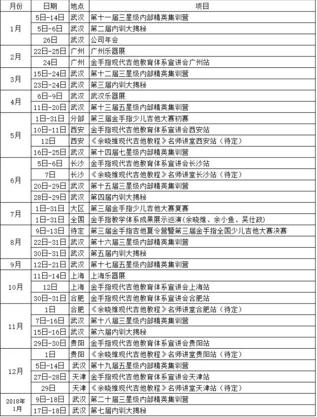 2017我们已经列出一整年的计划,我们也将按照既定的计划一项一项的去完成,为我们全国的加盟分部提供更多的活动交流平台。我们会不断努力,与大家一起为中国的吉他教育事业继续努力!