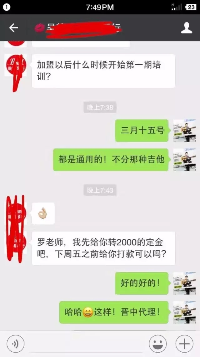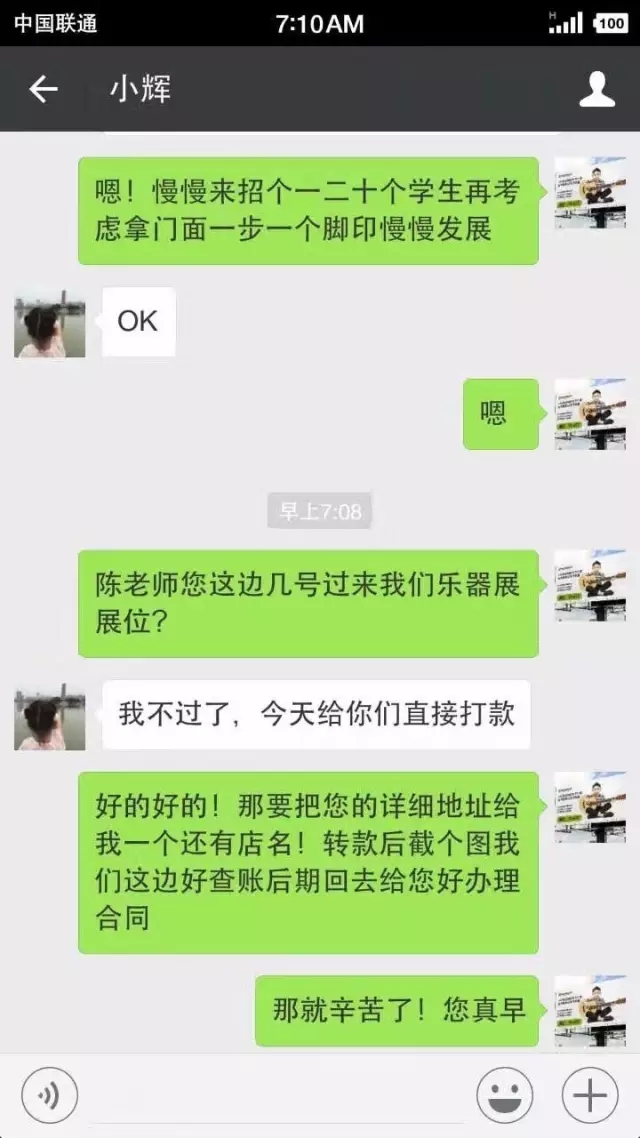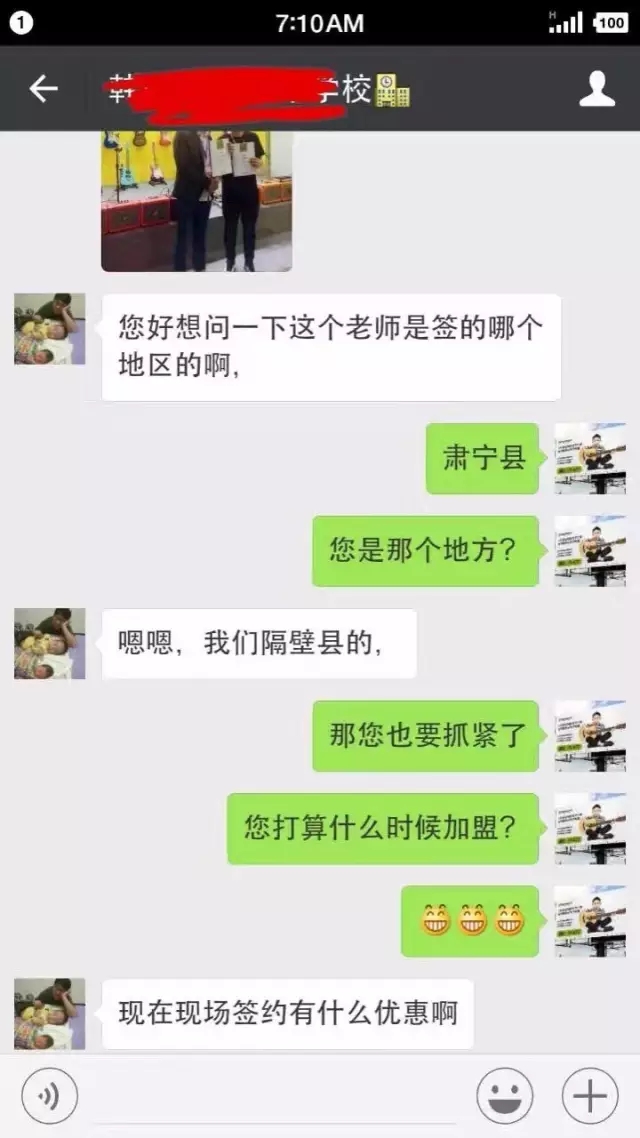 更有些无法参加广州乐展的老师在朋友圈看到我们的信息后,选择直接转款加盟,以免自己的城市被他人抢先加盟了,有如此强烈的竞业意识,还会担心自己无法做好吗?加盟金手指吉他教育,一定会为您的发展推波助澜!