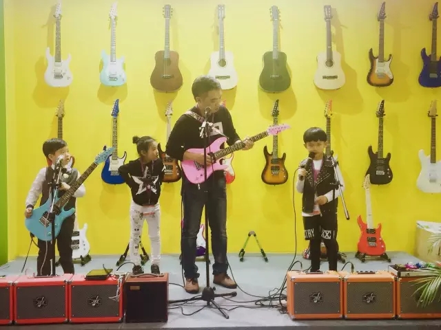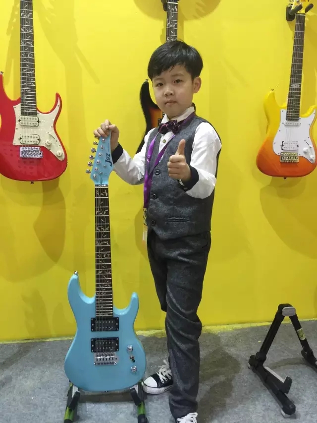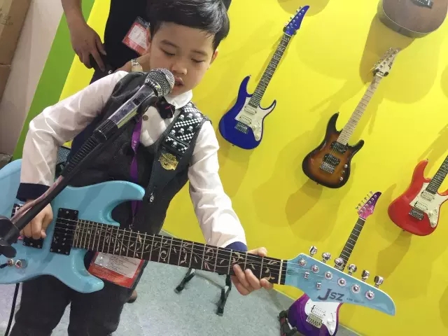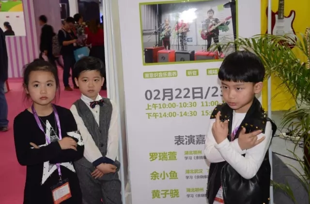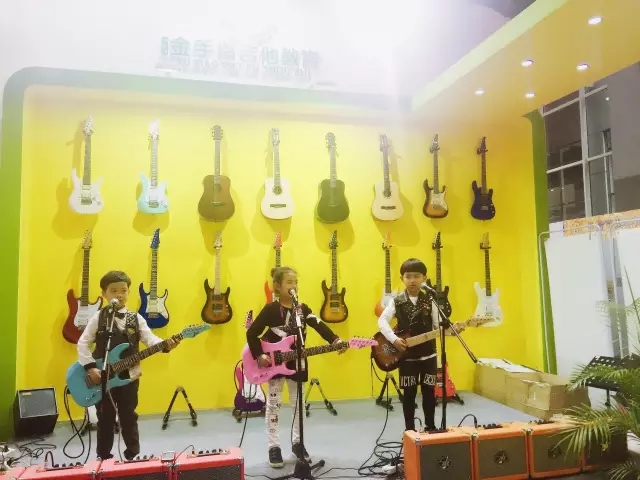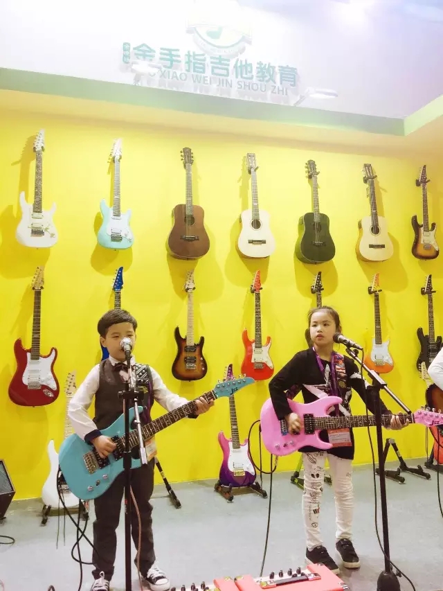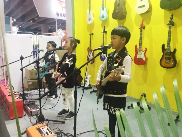 展会现场还特别邀请了金手指的三位小吉他手为大家带来精彩的表演,他们平均年龄6岁半,却表现出来惊人的音乐能量。从听音、视奏等方面展现出来对潜意识音乐素养培养的重要性。三位小吉他的表现也赢得现场观众的阵阵掌声。能让低年龄段的孩子轻松快乐的学习吉他,从小就培养良好的音乐素养,这是金手指吉他教育的优势,也是我们的教学目标。