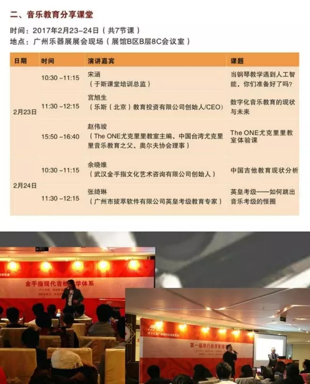 在此,我们诚挚邀请行业专业人员及有兴趣深入了解“金手指现代吉他教学体系”的朋友们,于2月24日上午10:30-11:15亲临广州乐器展馆B区B层8C会议室,与行业专家、同行现场交流。