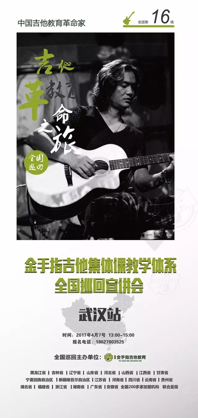 2016年4月7日下午13:00,在武汉国际乐器展上举行了“金手指吉他集体课教学体系”全国巡回宣讲会•武汉站,该讲座由中国知名吉他教育机构『余晓维金手指吉他教育』创始人余晓维老师亲自主讲,吸引了众多同行朋友前来参加。 此次讲座,旨在改变艺术教育机构当下一些实际的窘况,为大家带来一些吉他教学新思路,培养更多的精英人才,进一步推广中国吉他文化,推广金手指吉他集体课教学体系。余晓维老师朴实真挚的讲解让大家在良好的氛围中获益非浅。