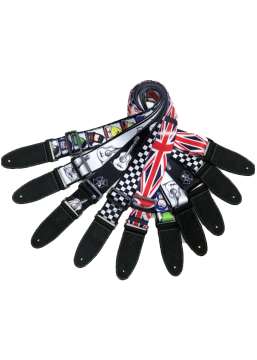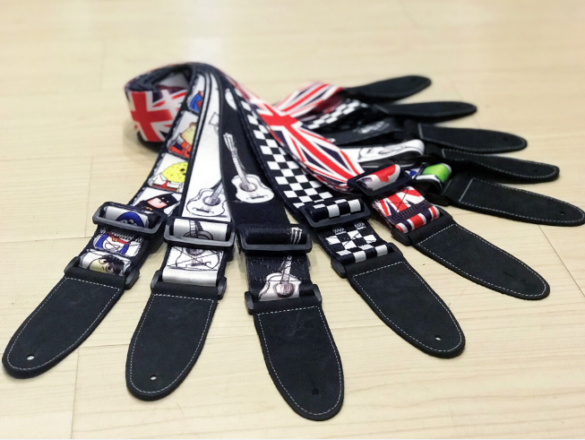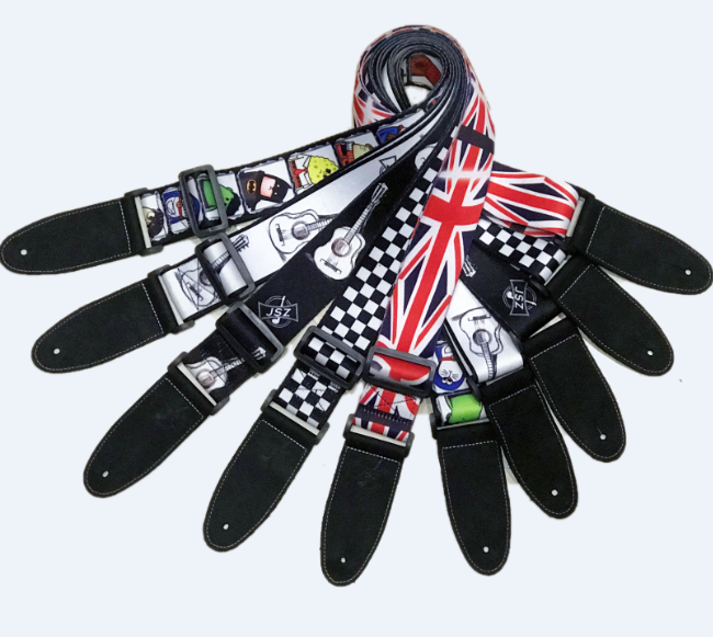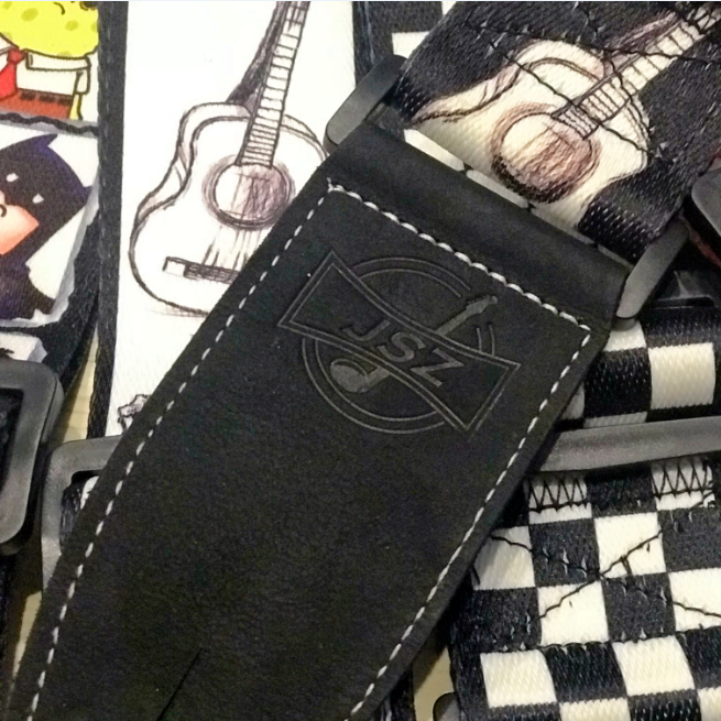 金手指定制款皮头背带 型号:JSZ-BD-02 背带头:真头层牛皮 缎带材质:涤纶 可选款式:黑色涂鸦、白色涂鸦、英国国旗、动漫歪头、黑白格