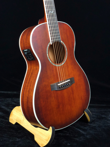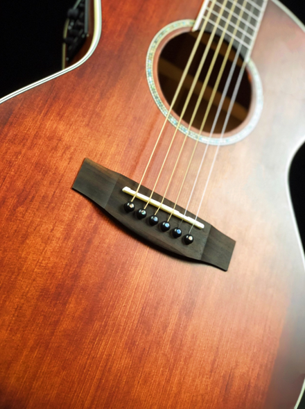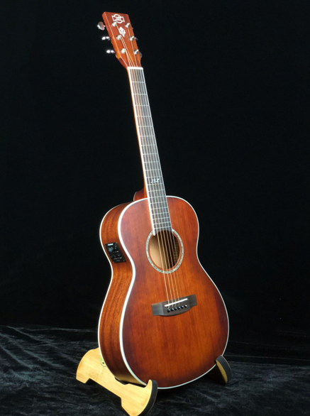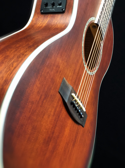 精选A级云杉面板音色清亮,拥有更广域的音色动态表现,能适应大部分风格的演奏,尤其是节奏感开放的曲风。背侧板采用桃花心制作,木味突出,中低频出色,音色直接而不尖锐,搭配加长的琴箱整体共鸣上有更加直接的反馈,中低频音色更能够给人通透、舒适而安静的感受。
