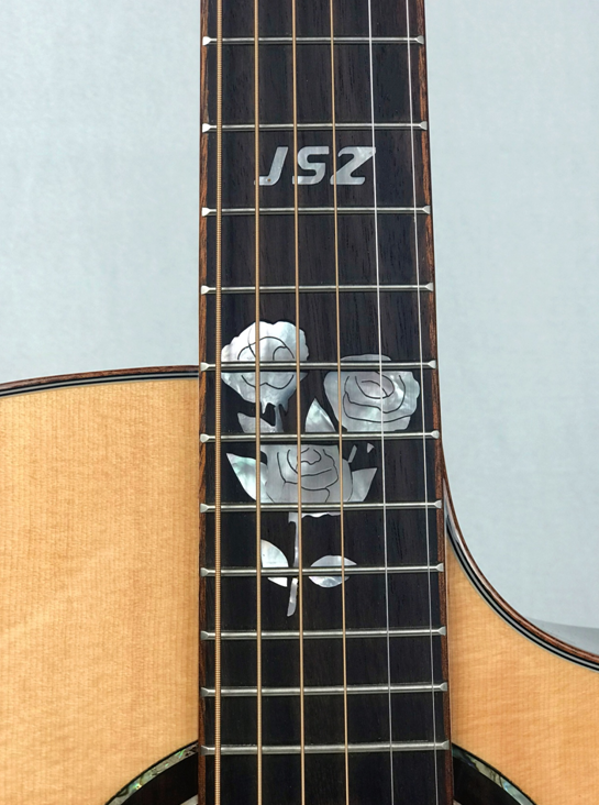 指板镶嵌:珍珠贝玫瑰花图案镶嵌