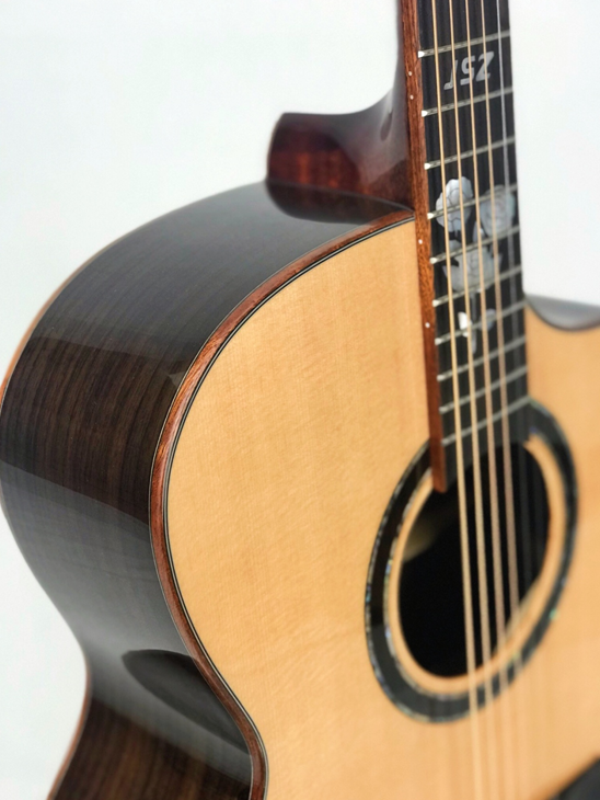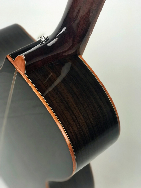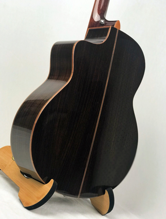 采用经典木材英格曼云杉做面板,玫瑰木做背侧,亮光漆面还原了木材的纹理。