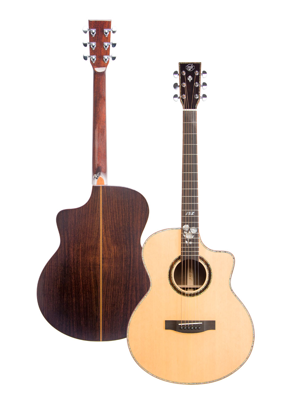 花系列标准琴头图案,玫瑰木贴面搭配彩贝包边大气唯美。