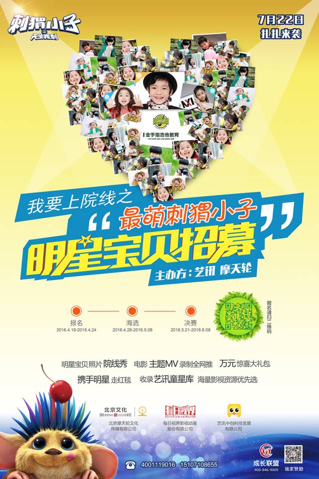 金手指之星重磅活动来袭,暑期档火爆电影《刺猬小子》,任泉、李冰冰、黄渤、黄晓明等众明星作为投资方力荐的少儿动画大片,余晓维金手指吉他教育品牌推广系列动作之一“最萌刺猬小子明星宝贝招募”线上投票评比活动开启啦!为喜爱表演、多才多艺的萌宝们提供展示自我的机会,用特别的方式诠释心中的大猬。最终入选的宝贝将有机会参加电影首映礼,与明星近距离接触以及参与电影主题曲MV录制,还有各种丰厚大奖等你来拿,该活动仅面向全国金手指小学员,快快行动参与进来吧!