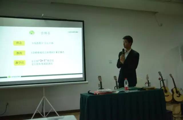 讲座当天,余晓维金手指吉他教育教学部主管罗祎老师为大家分享了“金手指吉他集体课教学体系”的重点内容,同时也号召广大老师可以抓住少儿吉他教育的发展空间和机遇,跟进先进的教育理念和吉他管理体制,加入余晓维金手指吉他教育大家庭,共同为推广中国少儿吉他教育而努力。